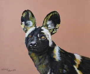 African Wild Dog Portrait. Pastel pencils on Pastelmat