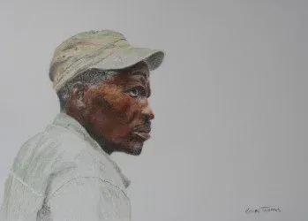 Game Scout Sgt Magocha. Over five decades of anti-poaching work and protection of rhino in Zimbabwe. Now retired. Faber Castell Polychromos pencils on Fabriano Academia paper.