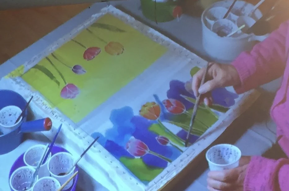 Silk Painting Demonstration by Helen Stanfield 5 Dec Written By Guest User Helen showed us how silk decorated with wax outlines resisted the colourful dyes. Guest User