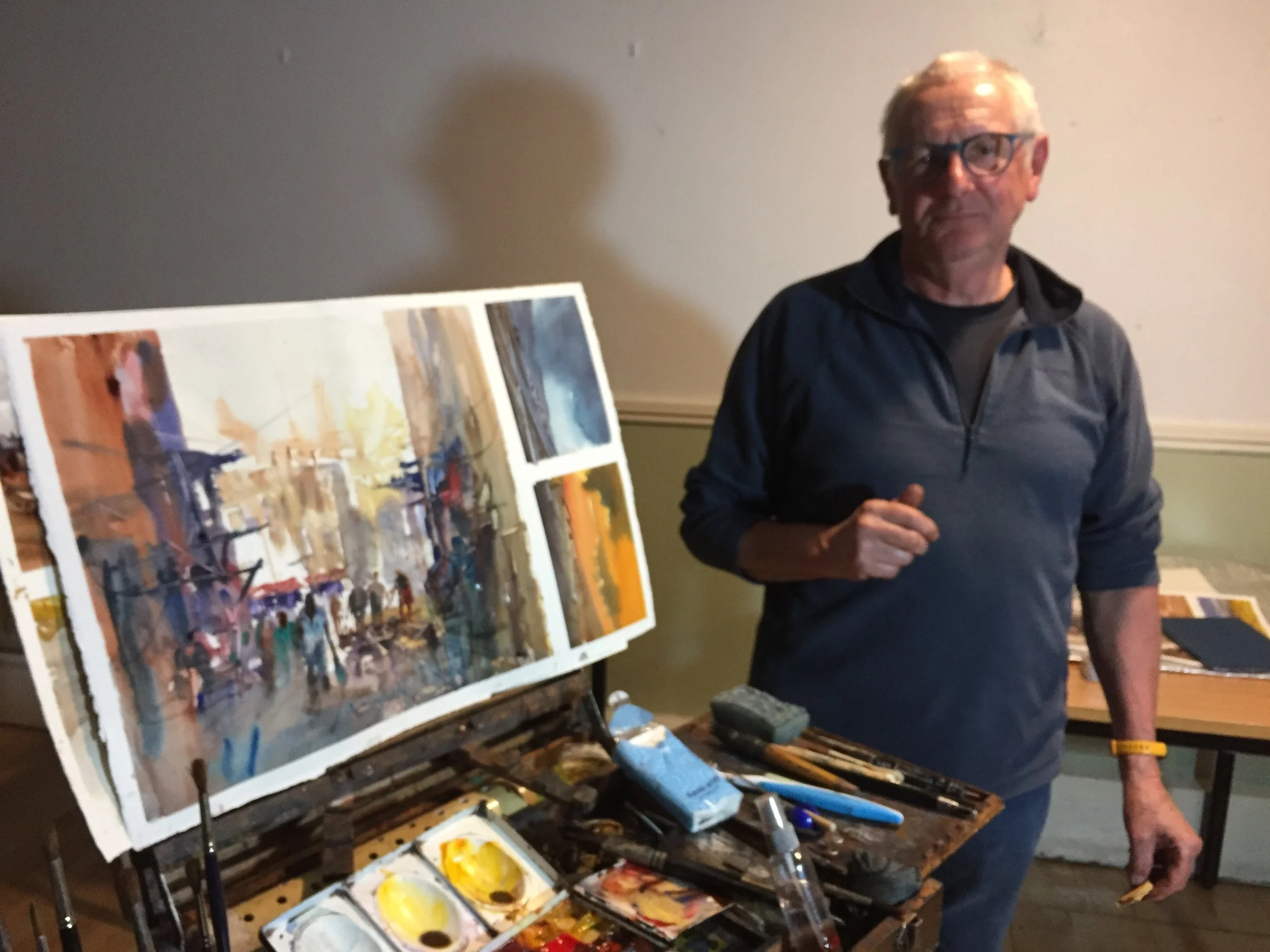 RI artist Brian Smith 26 Apr Written By Guest User Amazingly talented artist demonstrated no less than 6 paintings live tonight. Incredible how random marks became people, drapes, signage etc. Guest User